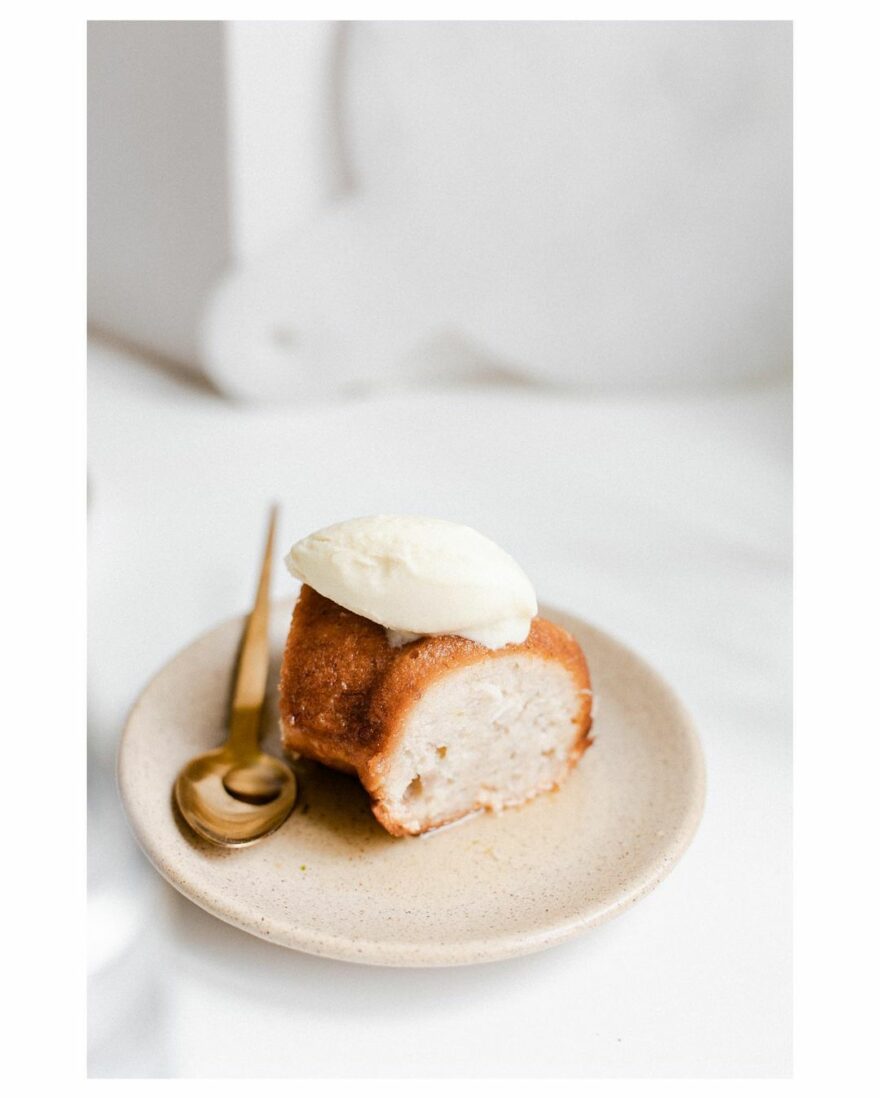 Entremet rhubarbe, fleur d’oranger et ricotta.